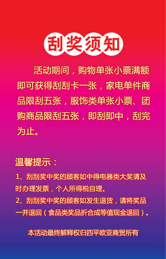 歐亞購(gòu)物中心刮獎(jiǎng)卡
