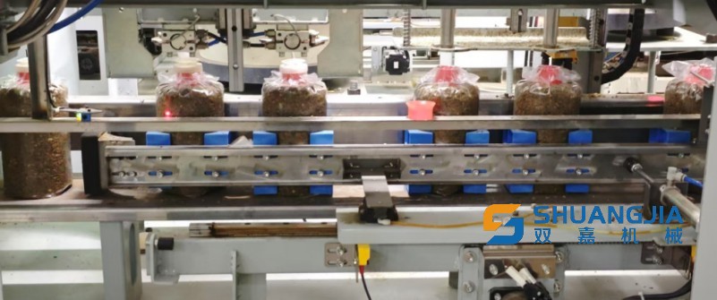 在裝包車間,機器里“蹦”出來一個個用塑料袋扎緊的菌包,由傳送帶繼續(xù)向前運輸,只有3個工人站在傳送帶前檢查。這套全自動化生產(chǎn)系統(tǒng),一天能產(chǎn)3萬個菌包,而在以前,人工套袋扎口十分麻煩,同樣的產(chǎn)量則需要40余人。