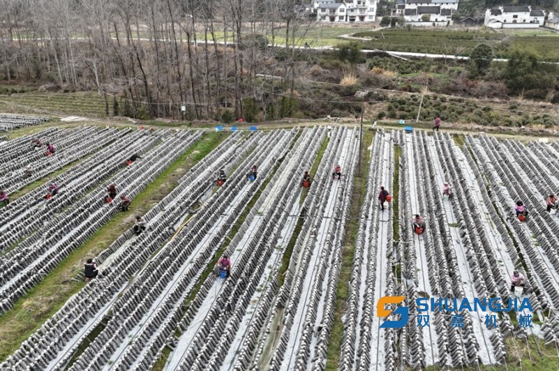 走進(jìn)安徽祁門縣小路口鎮(zhèn)雙蓮村黑木耳種植基地,一排排菌棒整齊有序,村民們嫻熟地采摘著成熟的黑木耳。