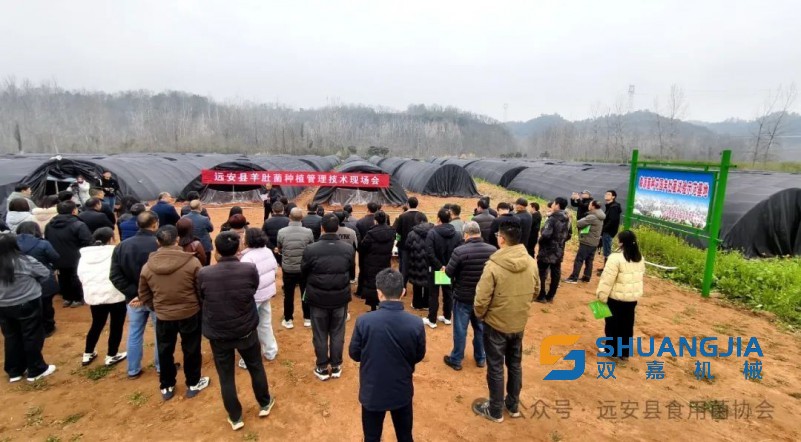 近日,湖北遠(yuǎn)安縣羊肚菌種植管理技術(shù)現(xiàn)場(chǎng)會(huì)在鳴鳳鎮(zhèn)花園村召開(kāi)。遠(yuǎn)安縣菌香苑食用菌專(zhuān)業(yè)合作社理事長(zhǎng)汪宗斌介紹了基地情況和羊肚菌種植技術(shù)經(jīng)驗(yàn)。遠(yuǎn)安縣人民政府副縣長(zhǎng)鄧作軍介紹了遠(yuǎn)安縣羊肚菌產(chǎn)業(yè)情況及食用菌發(fā)展規(guī)劃;湖北省食用菌產(chǎn)業(yè)技術(shù)體系宜昌試驗(yàn)站站長(zhǎng)、宜昌市農(nóng)科院微生物研究所所長(zhǎng)劉世玲介紹了羊肚菌種植關(guān)鍵技術(shù)及當(dāng)前注意事項(xiàng);湖北省食用菌產(chǎn)業(yè)技術(shù)體系研發(fā)首席、省農(nóng)業(yè)科學(xué)院經(jīng)作所副研究員王卓仁結(jié)合遠(yuǎn)安縣域特點(diǎn)講解了羊肚菌產(chǎn)業(yè)發(fā)展前景展望分析。參會(huì)人員參觀了羊肚菌基地出菇情況,并現(xiàn)場(chǎng)進(jìn)行技術(shù)交流。