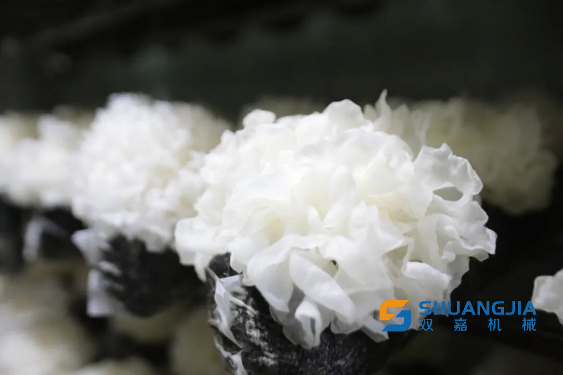 近日,在福建省2025年食用菌科技創(chuàng)新推廣聯(lián)合體項(xiàng)目——“古田縣銀耳新品種‘福銀雪耳’配套栽培技術(shù)及深加工產(chǎn)品研究與推廣”現(xiàn)場測產(chǎn)觀摩會(huì)上,采用新技術(shù)種植的“福銀雪耳”單袋鮮菇平均產(chǎn)量高達(dá)523.8克,展現(xiàn)出顯著的增產(chǎn)潛力。同時(shí),“福銀雪耳”色澤潔白、呈半透明狀,質(zhì)地柔軟且富有彈性;朵型圓整松散,形態(tài)酷似菊花,耳片舒展,邊緣呈現(xiàn)精致的小鋸齒狀;其耳心硬度區(qū)域小,有效提升了耳片得率,品質(zhì)優(yōu)異。
